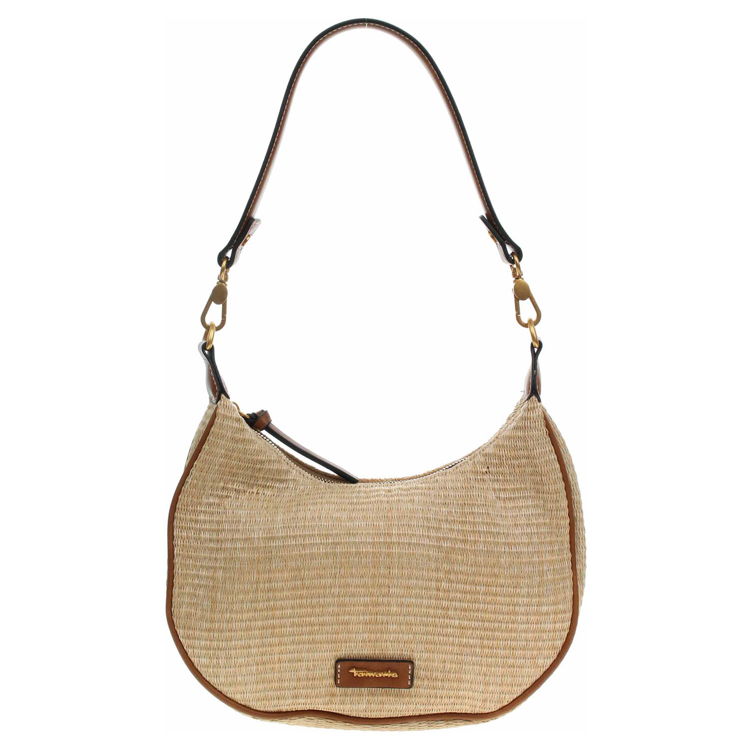 Tamaris - dámská kabelka se zapínáním na zip má svršek kombinovaný polyethylen/polypropylen (80% / 20%) a podšívka je z polyesteru. Kabelku je možno nosit v ruce za odepínatelný kratší popruh (výška 29 cm) nebo po výměně přes rameno na regulovatelném popruhu s karabinkami (délka cca 140,- cm). Rozměry: 27 x 8 x 26 cm. Karabinky, kroužky, zip i logo jsou z leštěného kovu zlaté barvy. Vnitřní výbava: 1x kapsa se zipem a 1x kapsa bez zapínání.