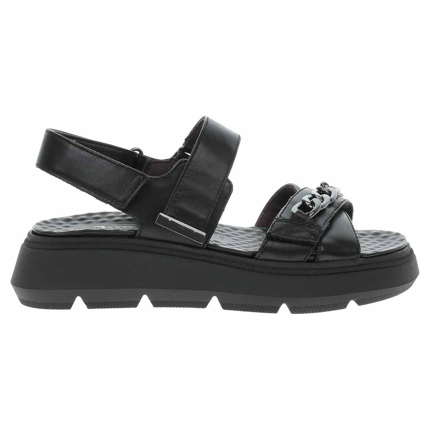 Boty Tamaris - dámské sandály se svrškem i stélkou z usně a s podšívkou kombinovanou useň/textil mají klínek vysoký 4,5 cm. Pásky přes špičku, nárt a přes patu se zapínají na suchý zip. Obuv je vybavená vyndavací stélkou, která je do obuvi vlepená suchými zipy. Vyměnitelné vložky do bot je možné vyndat za účelem provětrání a omytí. Sandály maximálním pohodlím hýčkají chodidlo od špičky až k patě – model Tamaris PureRelax nabízí ideální rovnováhu mezi módní obuví a perfektním střihem. Kvalitní výběr materiálů v kombinaci s vyjímatelnou vložkou a technologií Relax Fit zaručuje díky individuálnímu přizpůsobení vaší noze vysoký komfort – i při celodenním nošení.