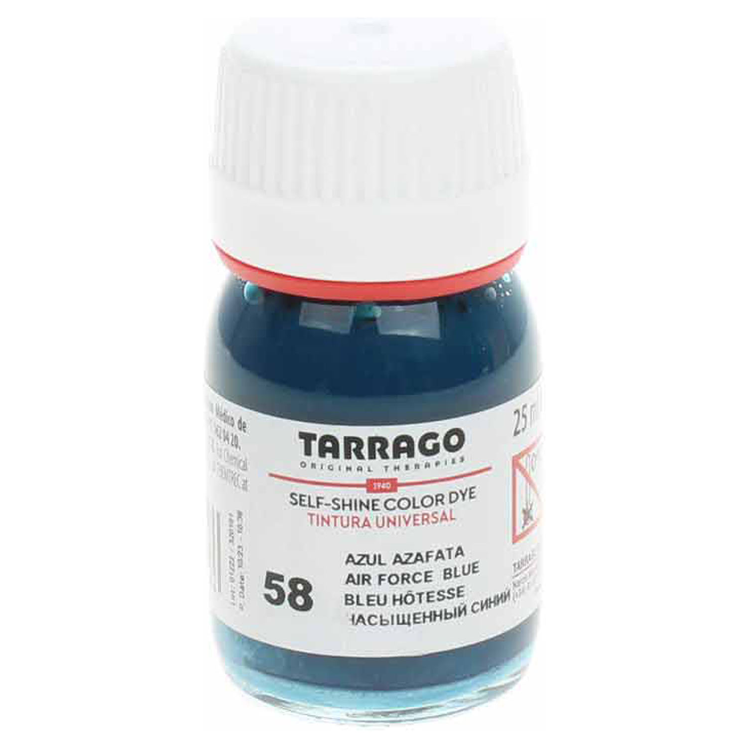 Tarrago barva na kůži - Color dye - modrá - 25 ml - barvou lze změnit vzhled vašich kožených a syntetických produktů. Produkt na vodní bázi je navržen tak, aby poskytl botám a kabelkám nový vzhled. Díky vysoké krycí schopnosti lze přeměnit barvu. Dokonce i z černé na bílou. Důležitá je také odolnost vůči oděru, praskání a odpuzuje vodu. Barvy jsou vhodné na kůži, koženku a plátno, nevhodné pro semiš a nubuk. Barva není vhodná na velké čalouněné plochy, spíše na drobné retuše. Použití: Před aplikací je důležité důkladně vyčistit a odmastit povrch, aby barva dobře přilnula a dosáhli jste co nejlepšího výsledku. Po aplikaci doporučujeme povrch naimpregnovat pro zajištění dlouhodobé ochrany a trvanlivosti.