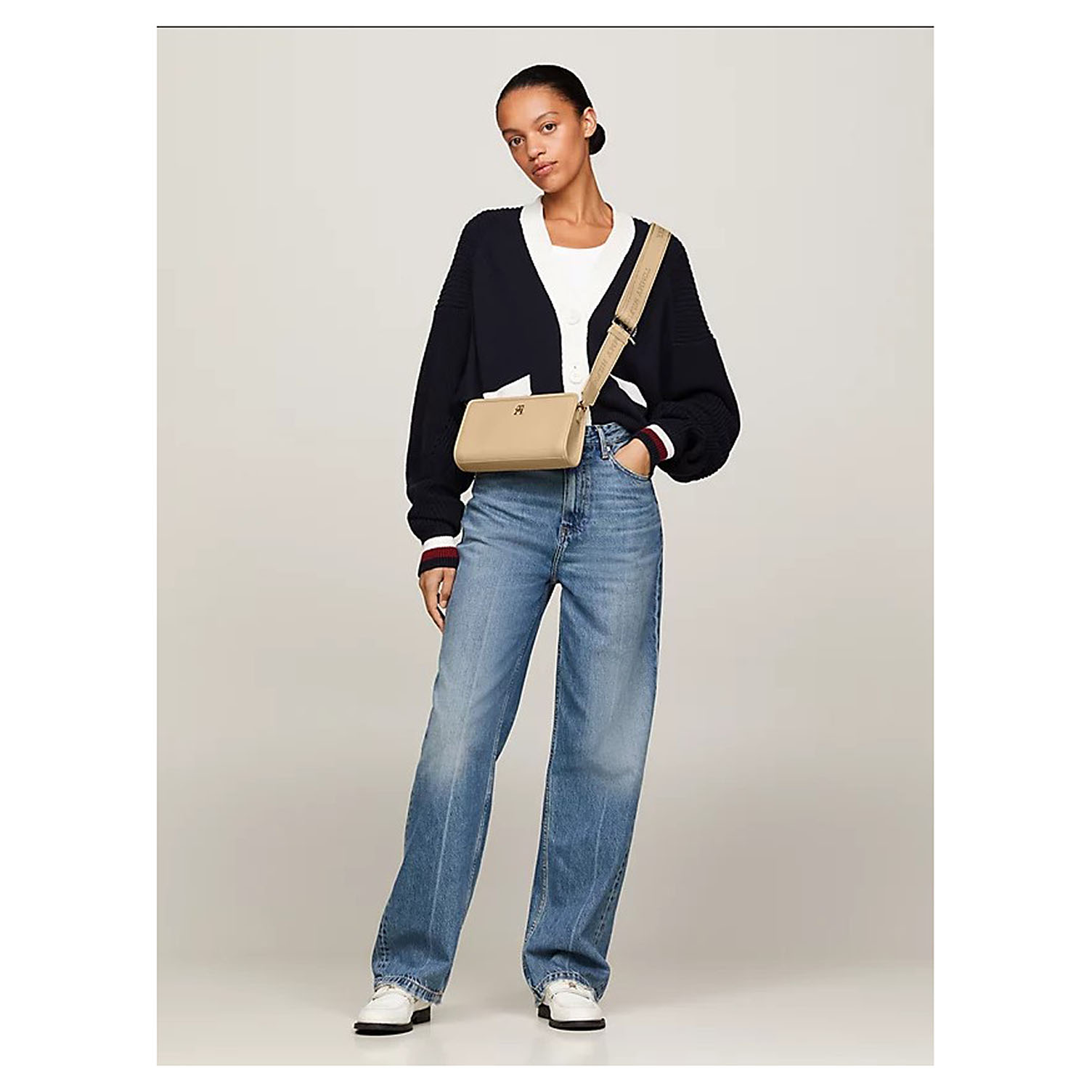 Tommy Hilfiger - dámská kabelka se zlatým logem se zapíná na zip a je vyrobená ze syntetiky (100% polyuretan). Rozměry - 22,5 x 7 x 12,5 cm (objem 1,2 l). Kabelku je možno nosit na regulovatelném popruhu s logem, který se nedá odepnout, přes rameno nebo crossover. Vnitřní výbava: 1x slot pro platební kartu. Součástí balení je praktický dustbag pro uložení kabelky.