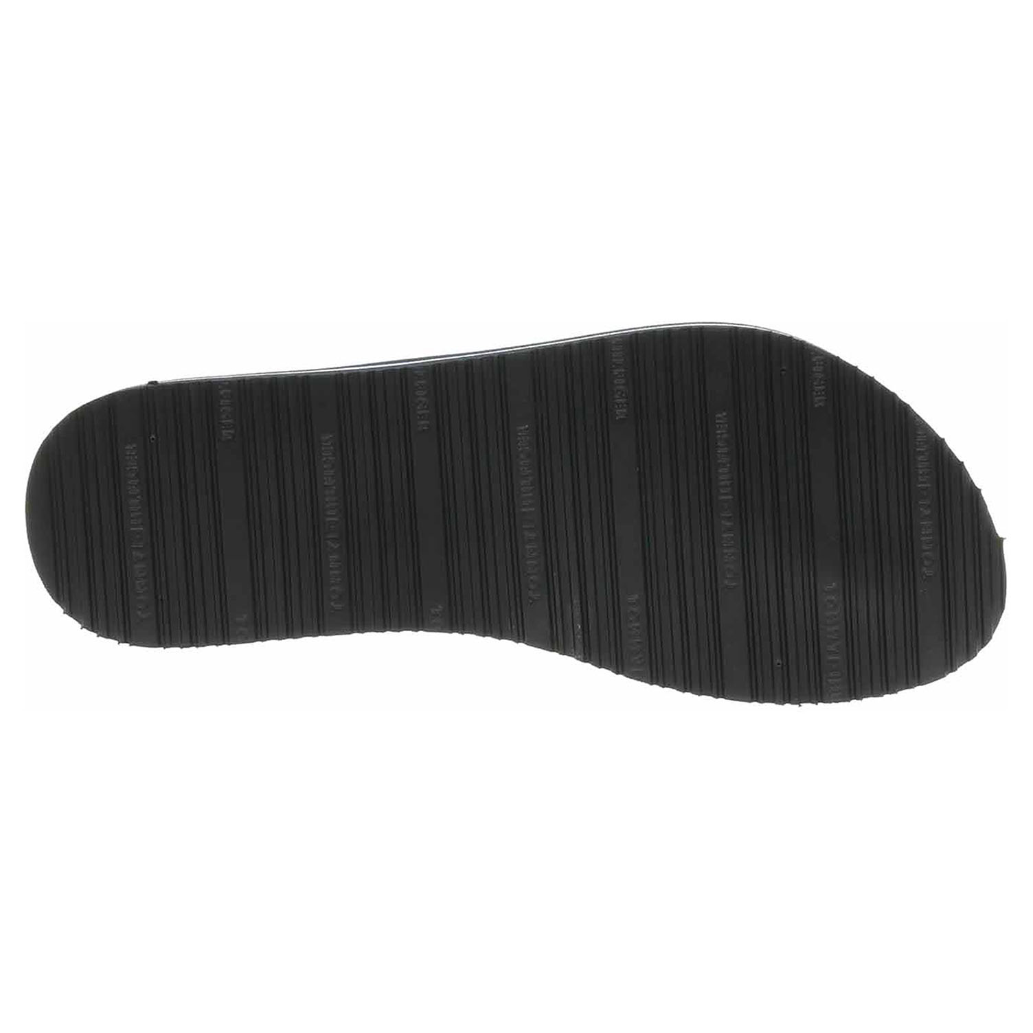 Boty Tommy Hilfiger - plážové dámské pantofle mezi prsty s textilním svrškem i podšívkou a stélkou ze syntetiky. Klínek je vysoký 2,- cm a platforma je vysoká 1,5 cm. Plážová obuv - je určena k rekreačním účelům v okolí koupališť, jezer a mořských pláží. Obuv není vhodná při chůzi na tvrdém povrchu - chodník, silnice.