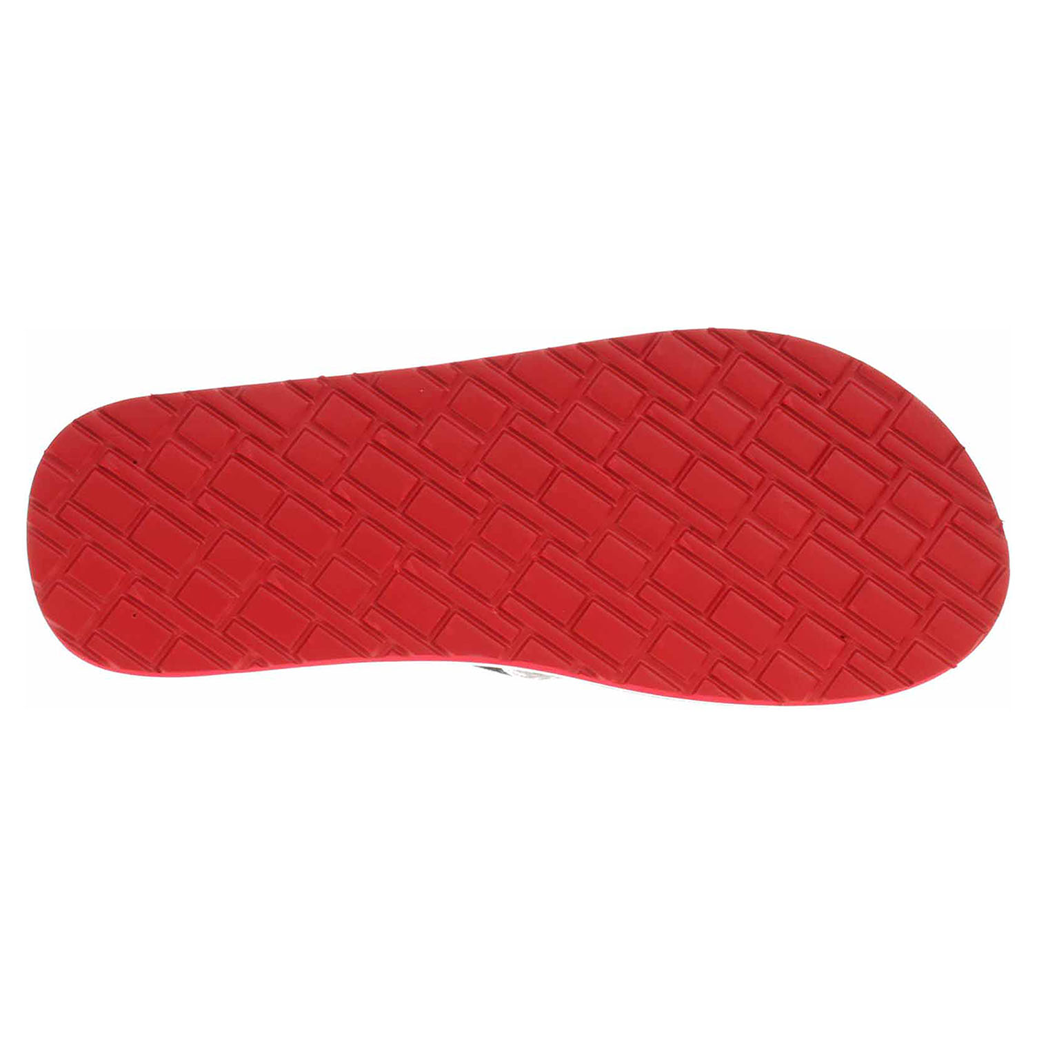 Popis:Boty Tommy Hilfiger - plážové pánské pantofle mezi prsty s textilním svrškem i podšívkou a stélkou ze syntretiky. Klínek je vysoký 1,5 cm. Plážová obuv - je určena k rekreačním účelům v okolí koupališť, jezer a mořských pláží. Obuv není vhodná při chůzi na tvrdém povrchu - chodník, silnice.